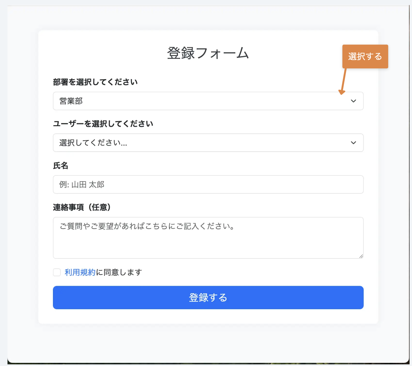 部署選択によりformのパラメータ全部を使ってリクエスト(Sitimulus使用)